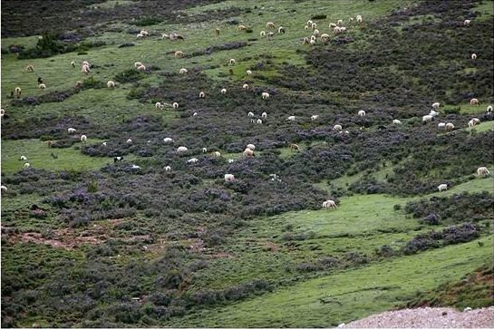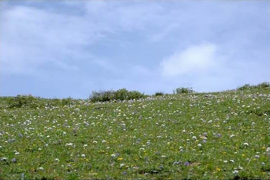 又是另一種截然不同的景象!野花爛漫,綠草滿地,好一個充滿生機的高寒草原的美景,與山背后的荒涼形成鮮明對比。在這里可以真正體驗了川藏線上“隔山不同天”的神奇。