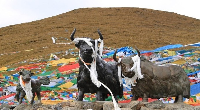 翻越了進入拉薩的最后一座高山-米拉山,這牦牛頭上的哈達,我去