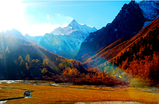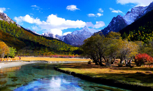 稻城位于四川省西南邊緣,地處青藏高原東南部橫斷山脈東側(cè),屬康巴藏區(qū)甘孜藏族自治州。稻城的地理、地貌都較特殊,既有終年積雪的高海拔山嶺,又有幽深詭秘的低海拔河谷,還有寬闊的草場,潺潺的溪流,景色變幻多姿,十分迷人。境內(nèi)河水清澈秀麗,群魚穿梭。河畔草場廣袤,溪流交錯。森林一望無際,山勢雄秀。四季景色分明。春夏,杜鵑遍開,爭芳斗艷;秋天紅葉似火,盡染層林,分外妖嬈;冬日白雪皚皚,銀裝素裹。最令人陶醉的是這里的秋色:紅的嬌艷,黃的明麗,綠的柔和,五彩繽紛,漫山遍野,“濃妝淡抹總相宜”。