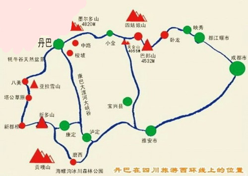 從成都出發(fā),開始我們的自駕之旅,沿著317國道,經(jīng)都江堰、漩口、映秀,在映秀轉(zhuǎn)入303省道,經(jīng)過臥龍自然保護區(qū)、日隆、小金、丹巴,到達八美鎮(zhèn);在八美轉(zhuǎn)入215省道,經(jīng)塔公,到達新都橋,在新都橋轉(zhuǎn)入318國道,經(jīng)康定、瀘定、雅安、最后又回到了成都,全長大概有一千多公里,游玩時間需要四到六天。