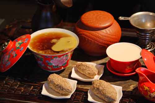藏族的酥油茶是很講究禮節(jié)的。大凡賓客上門入座后,主婦會立即奉上粢粑,這是一種炒熟的青稞粉和茶汁調(diào)成的粉糊,隨后遞上一只茶碗,倒上酥油茶。飲茶時,客人必須等主人把茶捧到面前才能伸手接過飲用,否則認為失禮。客人飲茶不能太急太快,不能一喝而光,一般以三碗為最吉利,每喝一碗都套留下少許,這被看作是對主婦打茶手藝不凡的一種贊許。主人給你倒上的酥油茶走時最好喝盡,否則就是對主人的不尊重。你不想再喝 了,只須將茶碗用手掌蓋住就行了。
