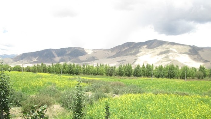 拉薩和日喀則地區(qū)大片的油菜花正在開放,這是在江南三月份才有的景致。