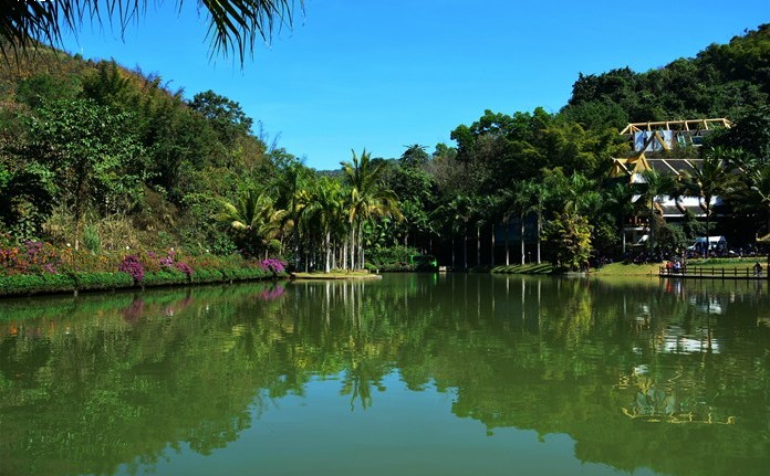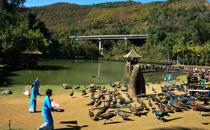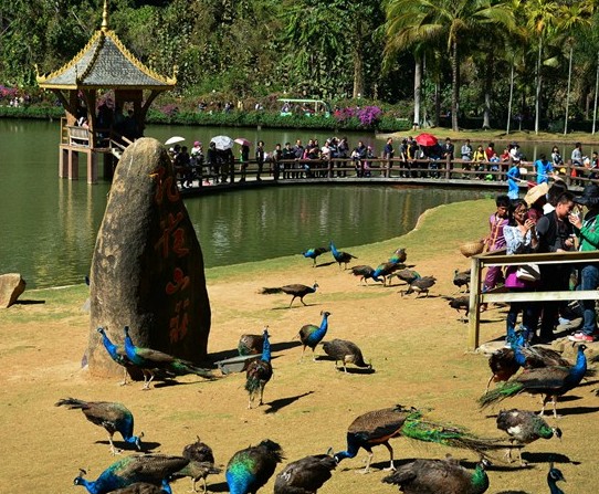 西雙版納原始森林公園位于景洪以東、瀾滄江以北,距州府所在地8公里處,是全州離景洪城最近的一塊原始森林,總占地面積25000畝,是西雙版納最大的綜合性生態(tài)旅游景點(diǎn)之一,公園融匯了獨(dú)特的原始森林自然風(fēng)光和迷人的民族風(fēng)情,園內(nèi)有北回歸線以南保存最完好的熱帶溝谷雨林,孔雀繁殖基地、猴子馴養(yǎng)基地、大型民族風(fēng)情演藝場(chǎng)、愛(ài)伲寨、九龍飛瀑、曼雙龍白塔,百米花崗巖浮雕、金湖傳說(shuō)、民族風(fēng)味燒烤場(chǎng)等十大景區(qū)五十多個(gè)景點(diǎn),突出體現(xiàn)了“原始森林、野生動(dòng)物、民俗風(fēng)情”三大主題特色.