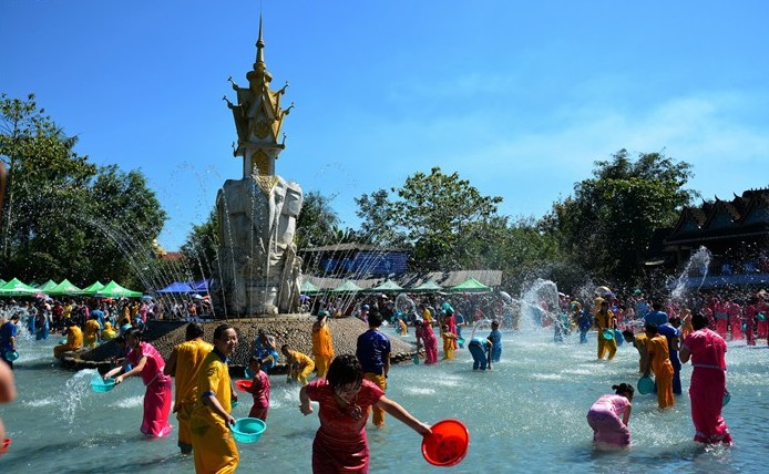 傣族園位于云南省西雙版納橄欖壩,景區(qū)內(nèi)有我國(guó)保存最完好的五個(gè)傣族自然村寨,占地面積3.36平方公里,建成了旅游景區(qū)大門樓、迎賓廣場(chǎng)、村寨旅游線路、江邊活動(dòng)區(qū)、旅游購(gòu)物區(qū)、燒烤場(chǎng)、潑水廣場(chǎng)。