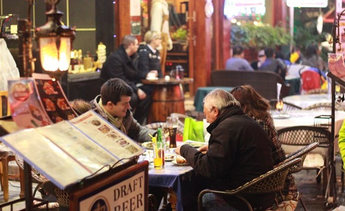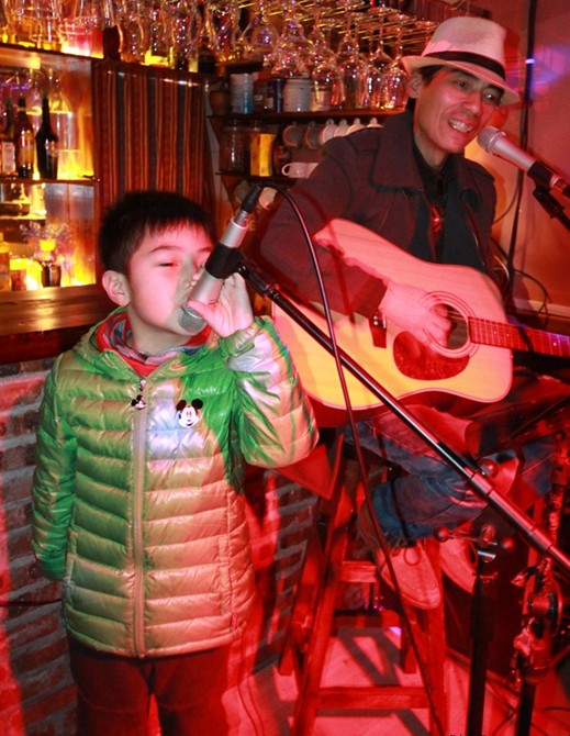 一個(gè)本來很清靜的bar,由于我們的加入,兒子和樂手配合的很好,一曲爸爸去哪,瞬間吸引了很多小朋友