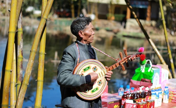 一個(gè)老者,自彈自唱,一個(gè)小攤,面對(duì)路人,生活如此,這般幸福