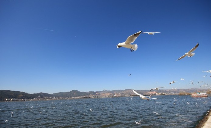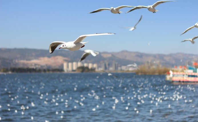 每年冬季,這些從西伯利亞趕來的紅嘴鷗,在昆明滇池和人們和諧的相處著