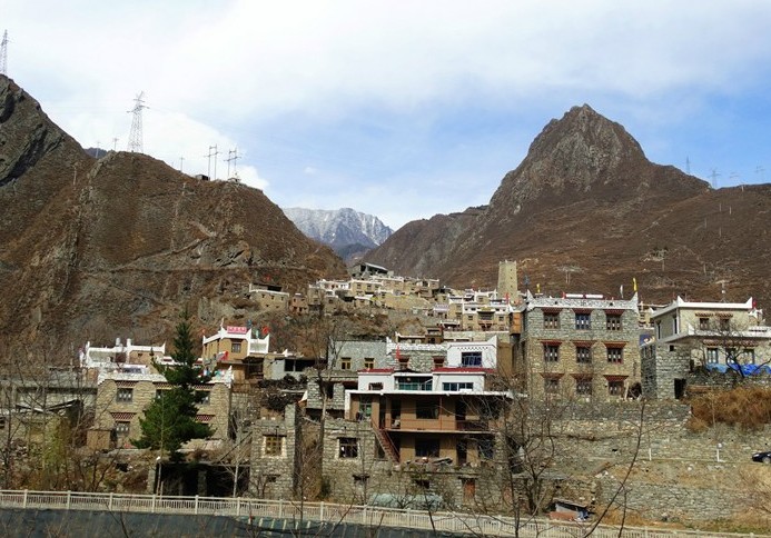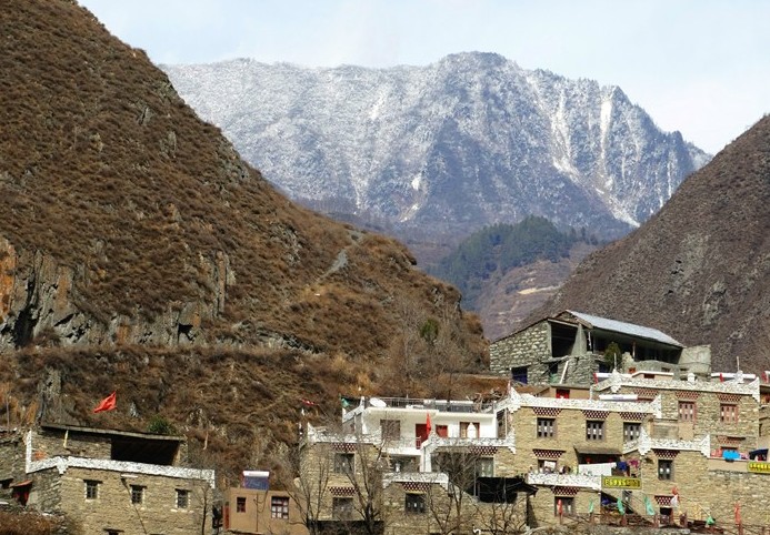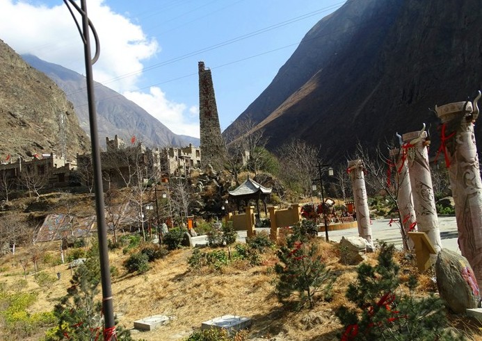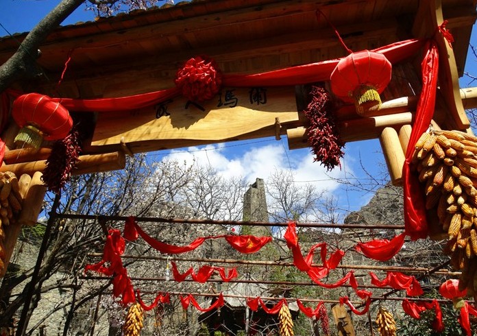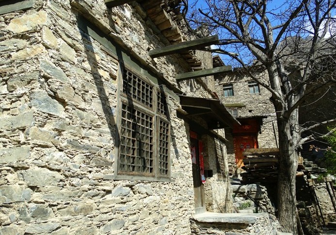 前往老桃坪羌寨。老羌寨的房屋距離近,道路狹窄。
