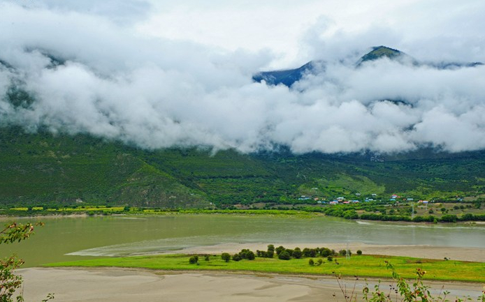 林芝縣是尼洋河和雅魯藏布江的交匯處,開闊的河床旁均是大片碧綠的田園。