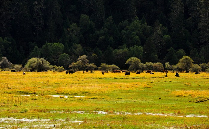 到了林芝,還有一個地方一定要去,那就是魯朗。魯朗鎮(zhèn)在川藏公路318國道路邊。途中要翻越色季拉山埡口,在埡口處山路上有幾個不錯的觀景點(diǎn),可以看到雪山和田園村莊、魯朗林海的風(fēng)景。運(yùn)氣好的話,還能看到南迦巴瓦峰?! ≡谶@里你既可以看到生長著鐵杉,喬木杜鵑組成的山地暖?帶針葉林,藤狀杜鵑、針葉林,灌木杜鵑、報春花,驢蹄章針葉林,灌木杜鵑和許多不知名的花朵組成的高山寒帶灌木草甸帶,種類繁多,讓人嘆為觀止。頗具林區(qū)特色的木籬笆、木板屋、木頭橋及農(nóng)牧民的村寨星羅棋布。錯落有致,勾畫了一幅恬靜、優(yōu)美的“山居圖”。
