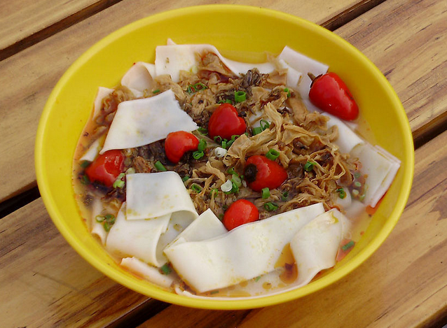 酸菜面塊是一種特色很濃的藏族傳統(tǒng)晚餐,到藏胞家做客,主人一般都會(huì)請(qǐng)你吃酸菜面塊。其主要原料是酸菜,酸菜的制作方法很簡(jiǎn)單:把菜葉煮到快熟時(shí),取出冷卻,然后裝入壇子或木桶里,密封好放在陰涼處,一星期左右就成了。制作面湯時(shí)首先加酸菜,其次加本地陰干的臘肉或新鮮牦牛肉,再加進(jìn)土豆,面塊和鹽、蔥等煮熟,香噴噴的酸菜面塊便做出來(lái)了。