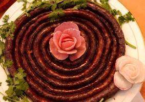 血腸是藏族食譜中的上等食物,貴客臨門,能以血腸待之,那是主人的榮耀。血腸是由腸衣、血汁、香料及牦牛肉(或豬肉)制作而成,營(yíng)養(yǎng)豐富,美味可口。