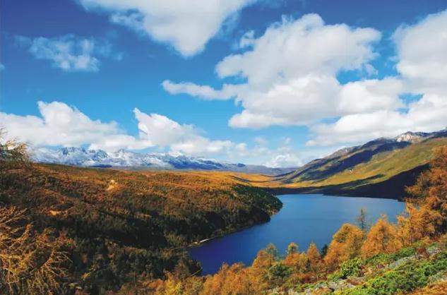 據(jù)了解,康定木格措位于四川省康定縣北20公里處,是川西最大的高山湖泊之一。景區(qū)素有“一日有四季、十里景各異”之說,不同的時(shí)節(jié)呈現(xiàn)出不同的亮點(diǎn)。秋天,彩林與藍(lán)天、雪山、金黃的草原、藍(lán)藍(lán)的湖水等景觀互相交融,是木格措一年中最美的季節(jié)。