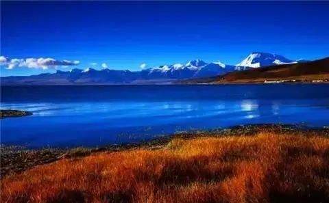 秋天的羊湖湖水早已經從千變萬化的藍恢復到深邃的藍。雨季過后再無水分滋養(yǎng)的羊湖草地越發(fā)枯黃,偶爾下一點雪,十月的羊湖從遠處看應該就是這樣。雍布拉康并沒有因為季節(jié)的變化而有所不同,只有山崖上的層層黃色顯示著秋之十月的到來。